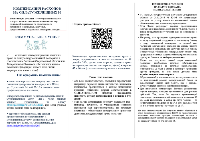 - Закон Свердловской области от 19.11.2008 г. № 105-ОЗ "О наделении органов местного самоуправления муниципальных образований, расположенных на территории Свердловской области, государственным полномочием Свердловской области по предоставлению отдельным категориям граждан компенсаций расходов на оплату жилого помещения и коммунальных услуг" (с изменениями и дополнениями).