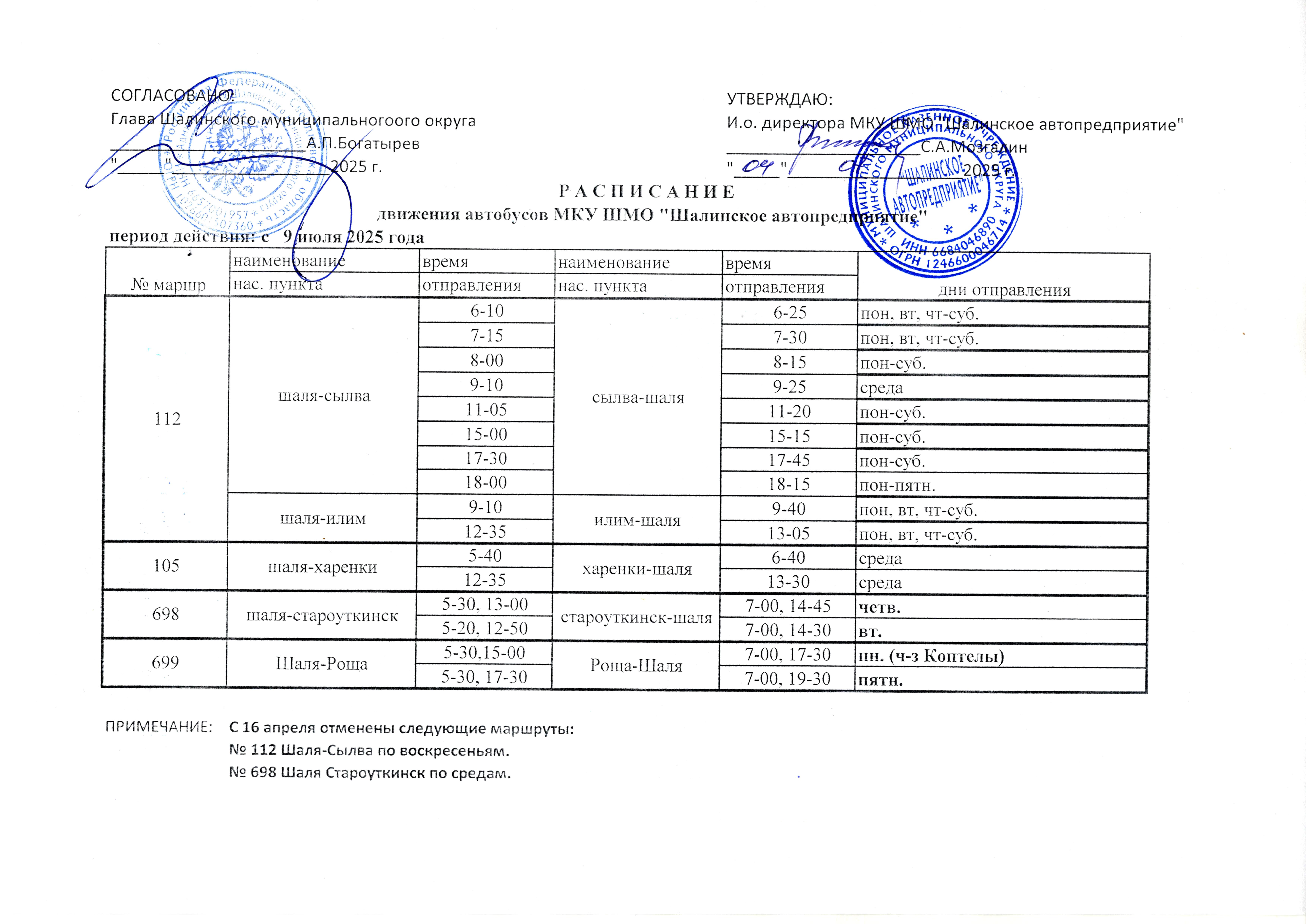 РЕЕСТР МАРШРУТОВ МУП «Шалинское автопредприятие»