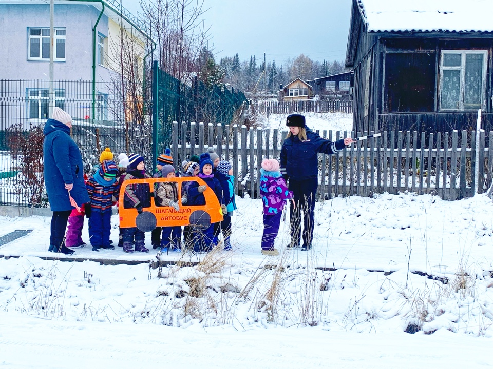 В рамках акции «Шагающий автобус» воспитанникам детского сада в поселке Вогулка напомнили о безопасных маршрутах движения