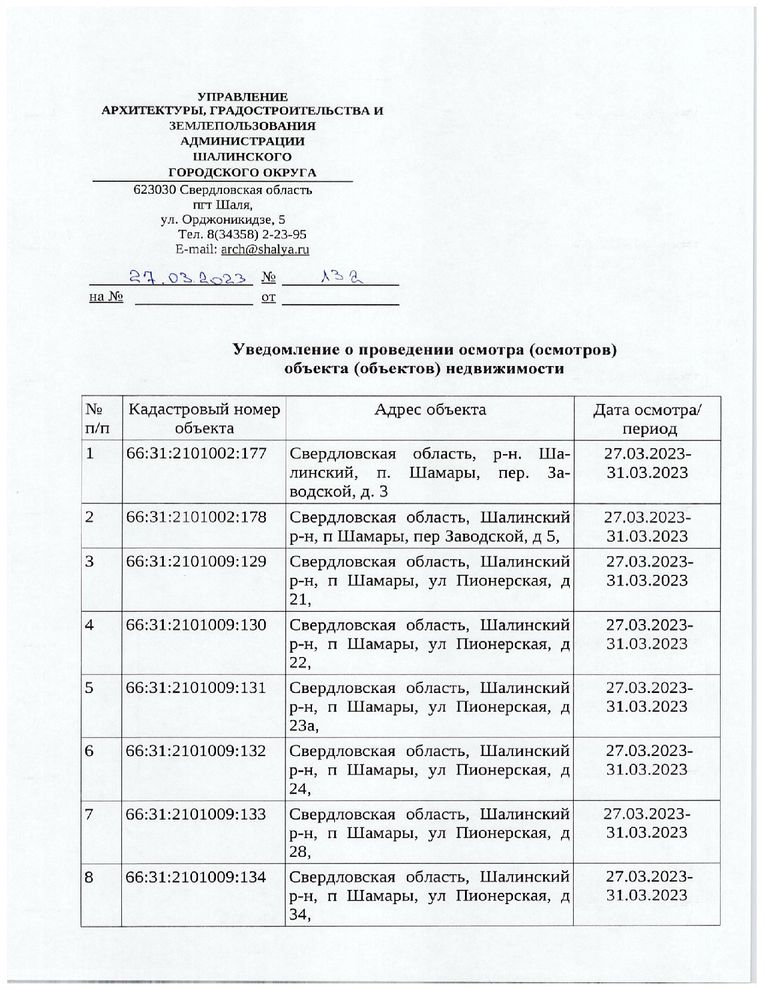 Уведомление о проведении осмотра (осмотров) объекта (объектов) недвижимости