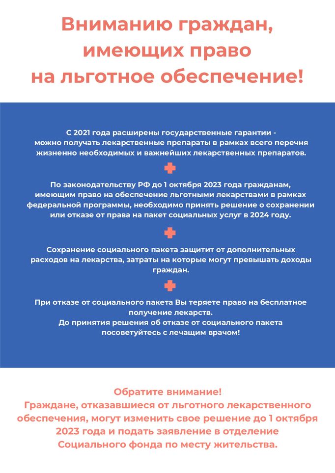 Вниманию граждан, имеющих право на льготное обеспечение!