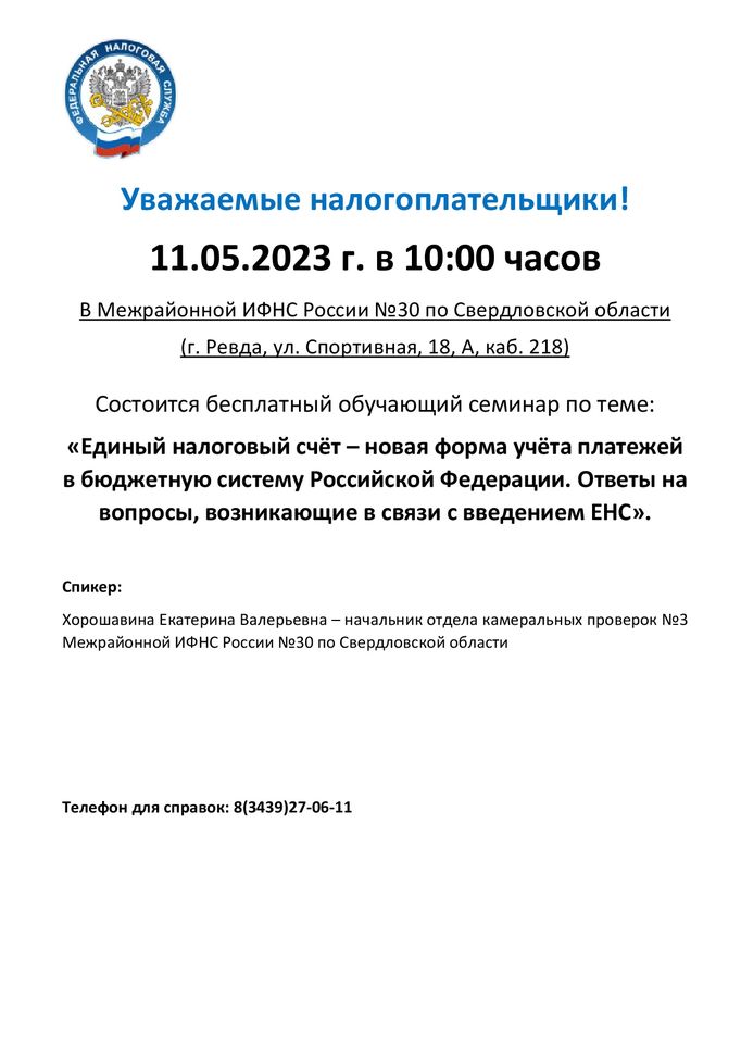 Налоговая инспекция информирует !: