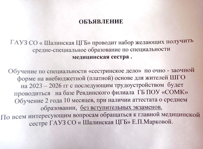 ГБУЗ СО "Шалинская ЦГБ" информирует !
