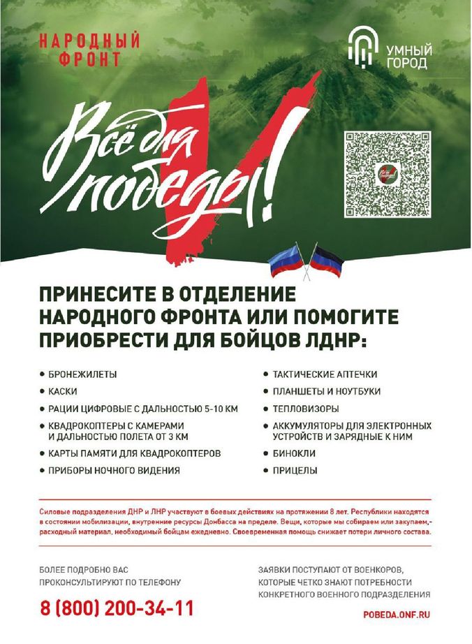 сбор средств на закупку необходимых товаров для нового подразделения 2-го гвардейского Луганско-Северодонецкого армейского корпуса;