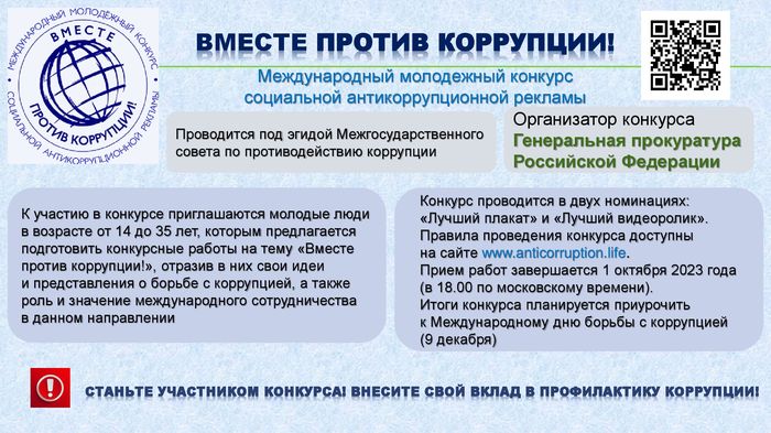 Под эгидой Межгосударственного совета по противодействию коррупции проводится Международный молодежный конкурс социальной антикоррупционной рекламы «Вместе против коррупции!»
