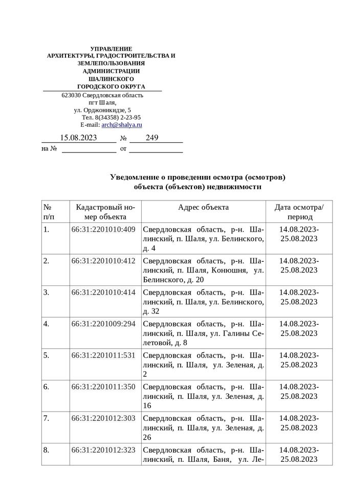 Уведомление о проведении осмотра (осмотров) объекта (объектов)