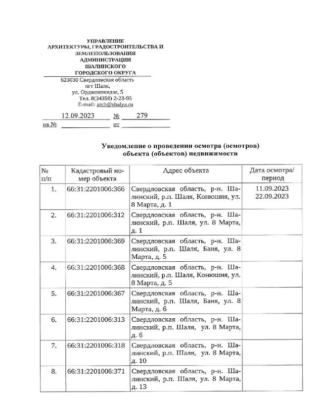 Уведомление о проведении осмотра (осмотров) объекта (объектов)