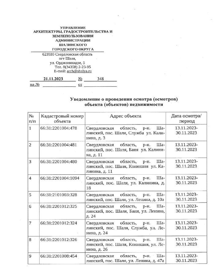 Уведомление о проведении осмотра (осмотров) объекта (объектов)