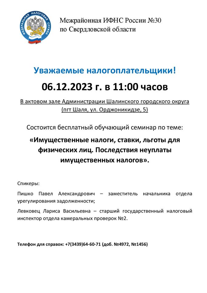 Налоговая инспекция информирует !: