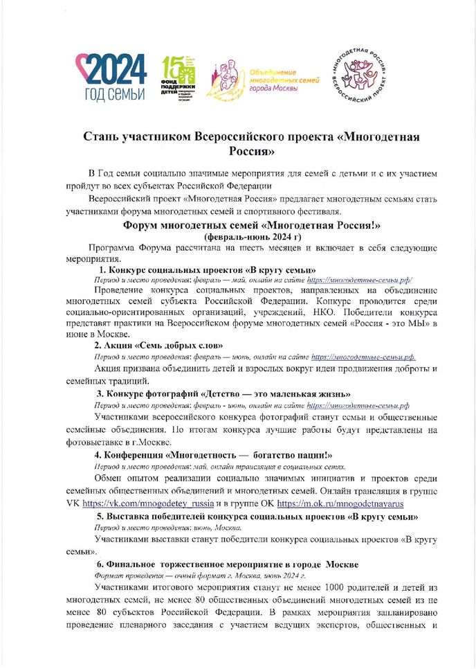 СТАНЬТЕ УЧАСТНИКОМ ВСЕРОССИЙСКОГО ПРОЕКТА "МНОГОДЕТНАЯ РОССИЯ"