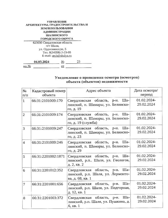 Уведомление о проведении осмотра (осмотров) объекта (объектов)
