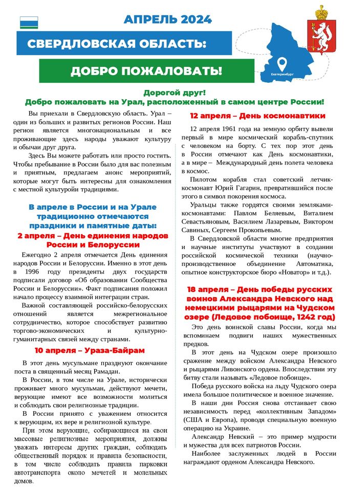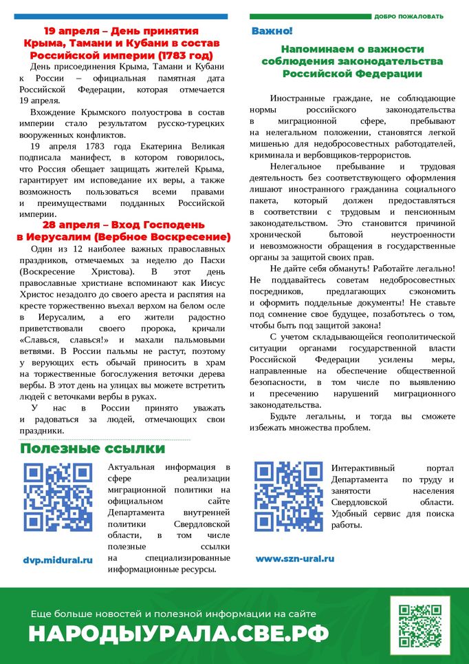 Информационный бюллетень для иностранных граждан на апрель 2024.