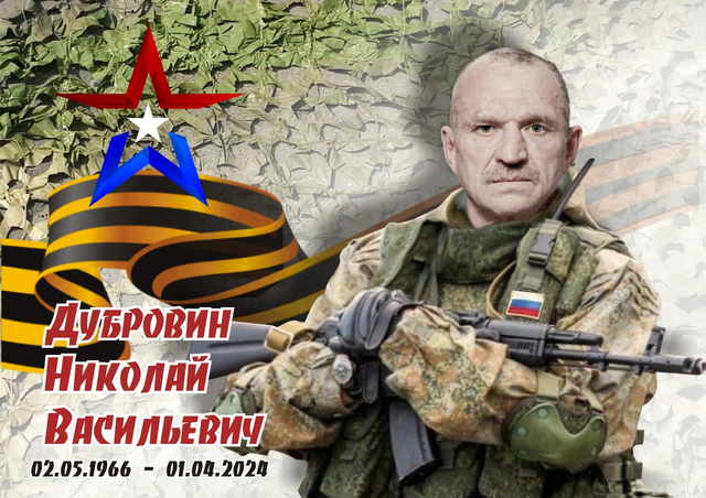 Администрация Шалинского городского округа выражает искренние соболезнования родным и близким Дубровина Николая Васильевича, 02.05.1966 г.р., участника СВО, добровольца, контрактника, погибшего 01.04.2024 года в районе нп. Семёновка Ясиноватского района ДНР. Прощание с Дубровиным Н.В. состоится 30.05.2024 с 11:00 - 12:00 часов ул. Нефтяников д.6. ВЕЧНАЯ ПАМЯТЬ ГЕРОЮ!!!
