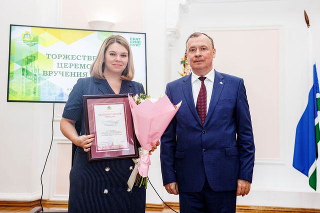 Коллективу Управления Федеральной службы государственной регистрации, кадастра и картографии по Свердловской области Глава Екатеринбурга Алексей Орлов вручил Благодарственное письмо «За значительный вклад в организацию и проведение голосования за благоустройство общественных территорий в рамках федерального проекта