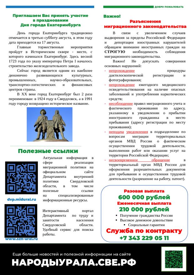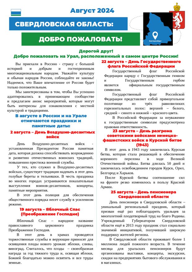 Информационный бюллетень для иностранных граждан на август 2024 г.