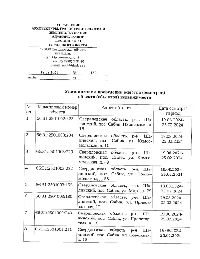 Уведомление о проведении осмотра (осмотров) объекта (объектов)