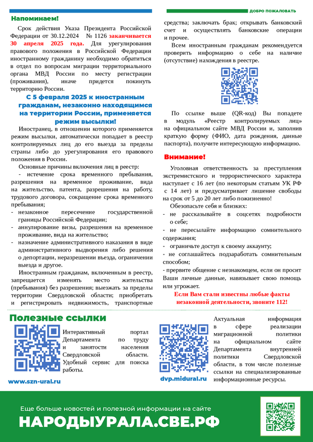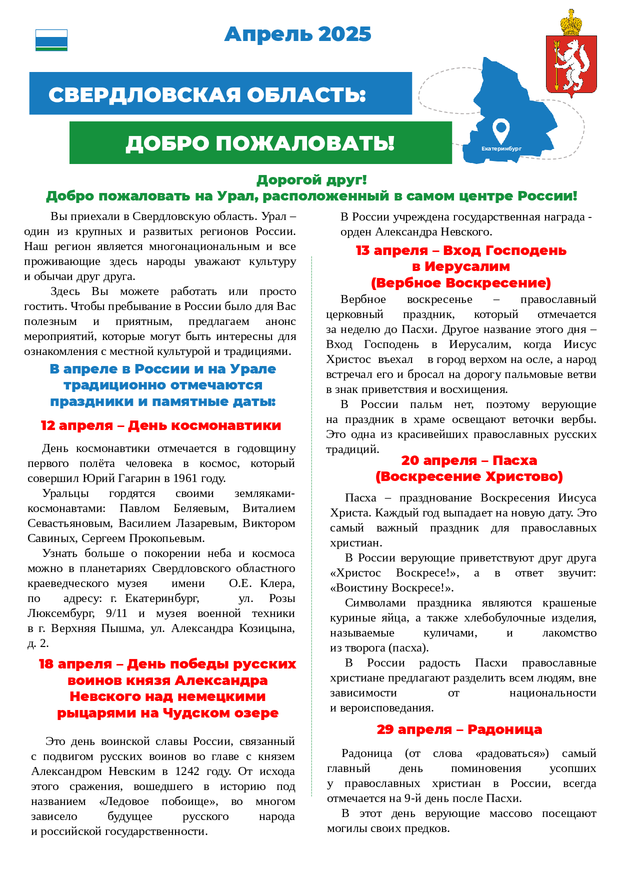 20 марта 2025 Бюллетень для иностранных граждан на апрель 2025 года, в котором содержатся сведения о государственных праздниках, памятных датах и полезная информация.