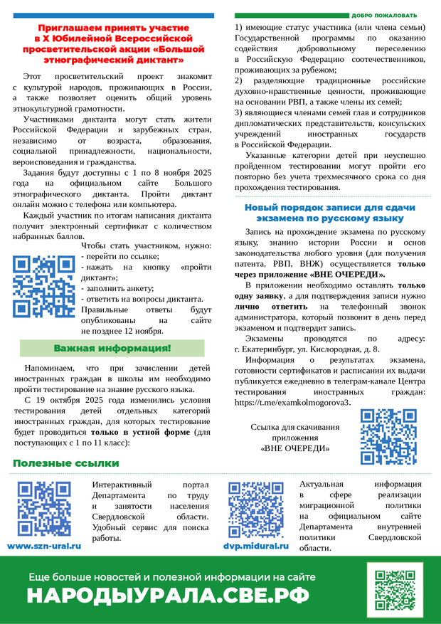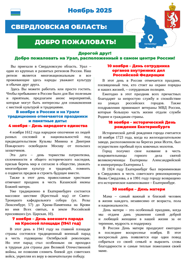 5 ноября 2025 Бюллетень для иностранных граждан на ноябрь 2025 года, в котором содержатся сведения о государственных праздниках, памятных датах и полезная информация.
