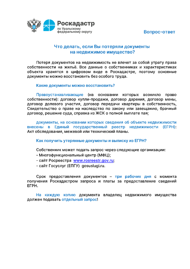 Вопрос-ответ: Что делать, если Вы потеряли документы на недвижимое имущество