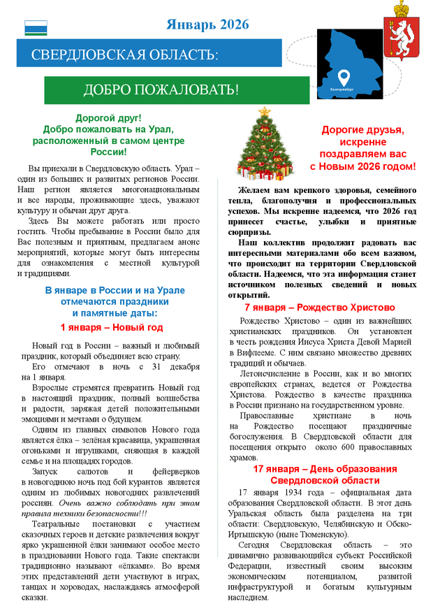 26 декабря 2025 Бюллетень для иностранных граждан на январь 2026 года, в котором содержатся сведения о государственных праздниках, памятных датах и полезная информация.